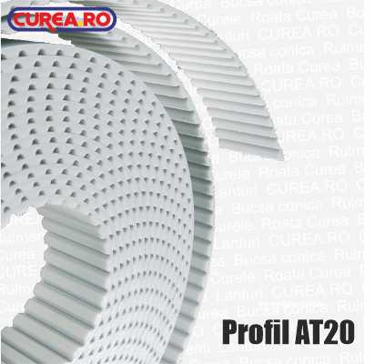 Az AT20 folyóméteres PU fogasszíj szabványos méretei a következők: profilmagasság 8mm, fogtávolság: 20mm, fogmagasság 5mm. Az AT20 folyóméteres szíjak egyedileg készülhetnek NFT (fogoldali bevonat) és NFB (hátoldali bevonat) kivitelben is. ezen verziók teljes tekercsben készülhetnek. (Abban az esetben nem kell teljes tekercset megvenni, ha az alábbi táblázatban lát bevonatos termékből raktárkészletet.)