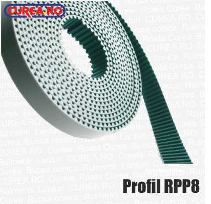 A PU folyóméteres HTD8M (MTD8 vagy RPP8) fogasszíjak fogosztása 8mm. Szabványos szélességekben készülnek. Vásárláskor a termék kívánt szélességének megfelelő változatot kell kiválasztani, majd a rendelés leadásakor meg kell adni a kívánt hosszot és darabszámot. A hosszot méterben kell megadni. Tizedesként megadva rendelhetők a szíjak milliméter pontossággal. A szíjak rögzítése 8M leszorító lappal történik.