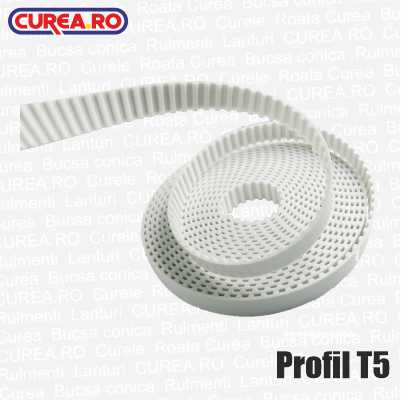 A PU T5 fogasszíjak a Megadyne Megalinear termékcsoportba tartoznak. Fogaik a normál T5 osztásnak megfelelőek, a tekercsnek megfelelő szélességben, folyóméterben vásárolhatók. A rendelési hosszot egész fogra kerekítjük.