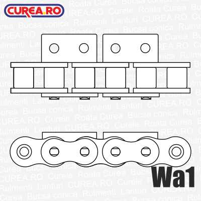 Az WA1 kivitelű fülesláncok olyan görgősláncok, amelyeken a lánc egyik oldalán elhelyezkedő hevederek, (vagy a lánc egyik oldalán elhelyezkedő minden második heveder) ki van cserélve egy fekvő (hajlított), SZÉLES fület és egy darab furatot tartalmazó hajlított lemezre. Röviden az WA1 füleslánc jelölés értelmezése: FEKVŐ széles fül egy furattal a lánc egyik oldalán.